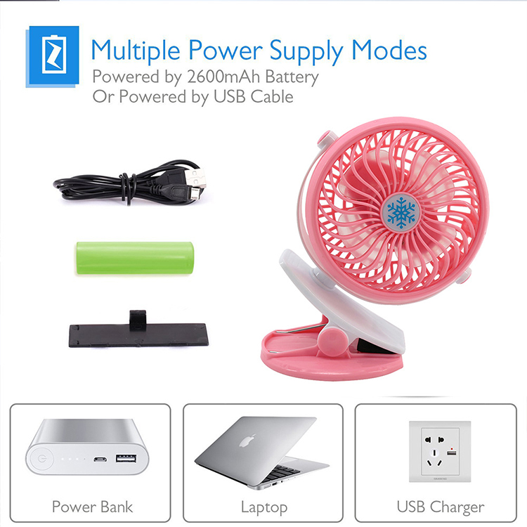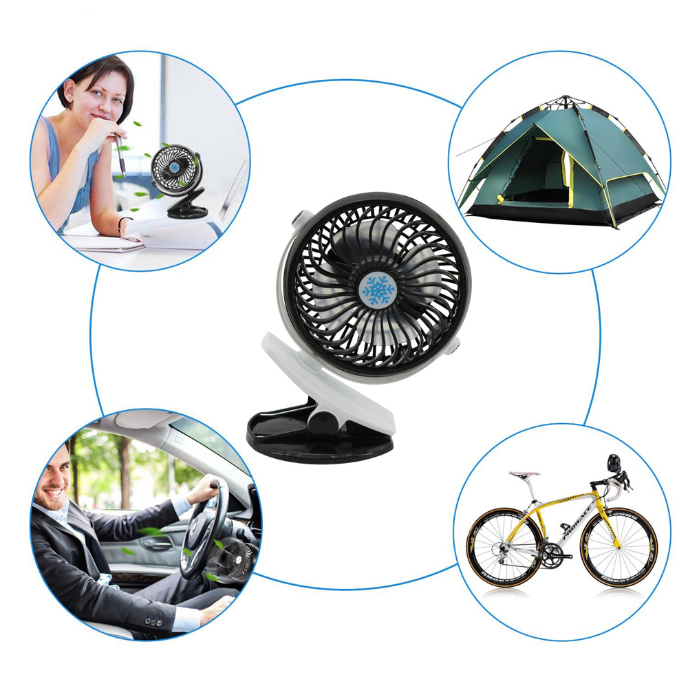 360 Degree Rotation USB Rechargeable Mini Clip Table Fan